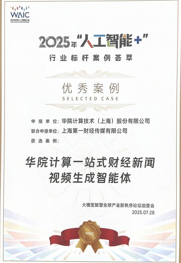 2025年10月17日,第一财经《秒懂金融》AI数智人应用案例再获AI界奖项。在全球权威IT市场研究和咨询公司IDC发布的“2025 IDC中国未来企业大奖”获奖名单中,第一财经与华院计算联手打造的“第一财经一站式财经新闻视频生成智能体”凭借在“AI+传媒”领域的创新突破,荣获“AI与生成式AI领军者”赛道优秀奖。