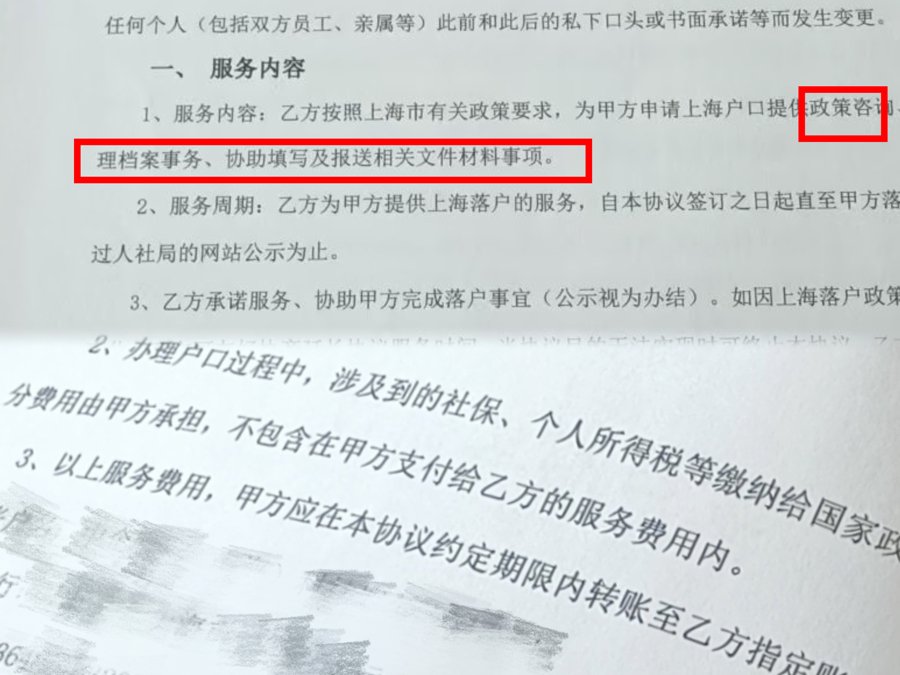 落户服务协议中并未出现“挂靠”“名额买卖”等敏感字眼,仅以“落户服务”代称。