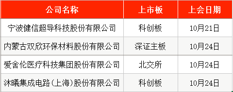 本周,上交所、深交所、北交所将继续开审。其中,10月21日,上交所将审议宁波健信超导科技股份有限公司(下称“健信超导”)的科创板首发事项。