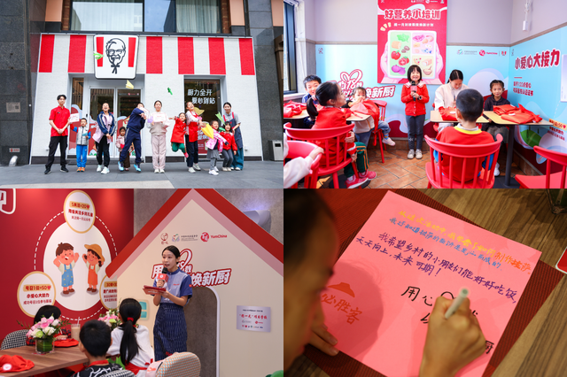 “捐一元村校厨房焕新”项目在百胜中国部分肯德基、必胜客餐厅开展主题活动,邀请小朋友实地参观餐厅后厨设备和环境,让他们直观了解厨房运作与食品安全标准。同时,工作人员向孩子们讲解“好厨房”的概念以及基础营养知识,让他们在趣味互动中接触到科学饮食理念。此外, 为了让公众更直观感受到乡村儿童营养改善需求,项目通过餐厅主题活动、线上互动及乡村学校探访,让更多的人了解厨房设备与食品安全标准,展示村校厨房焕新及营养宣教的成果。多渠道、多形式的全民参与,使善意得以落地,让乡村学校厨房焕新行动成为爱心与社会互动的桥梁。