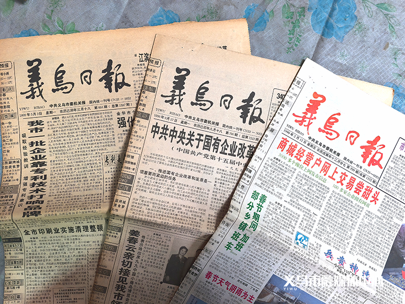 在冯树有的收藏中,最早的一份是1997年1月18日的《义乌日报》周末版,一版刊登着《恒风集团各客站积极投入春运》等充满时代气息的新闻。冯树有抚摸着这份报纸道:“它见证了一段历史。”