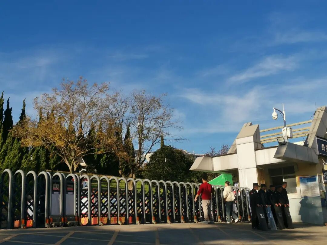 隔着校门栅栏,记者看到校内还有保安站岗,有几名学生在校内广场走动。