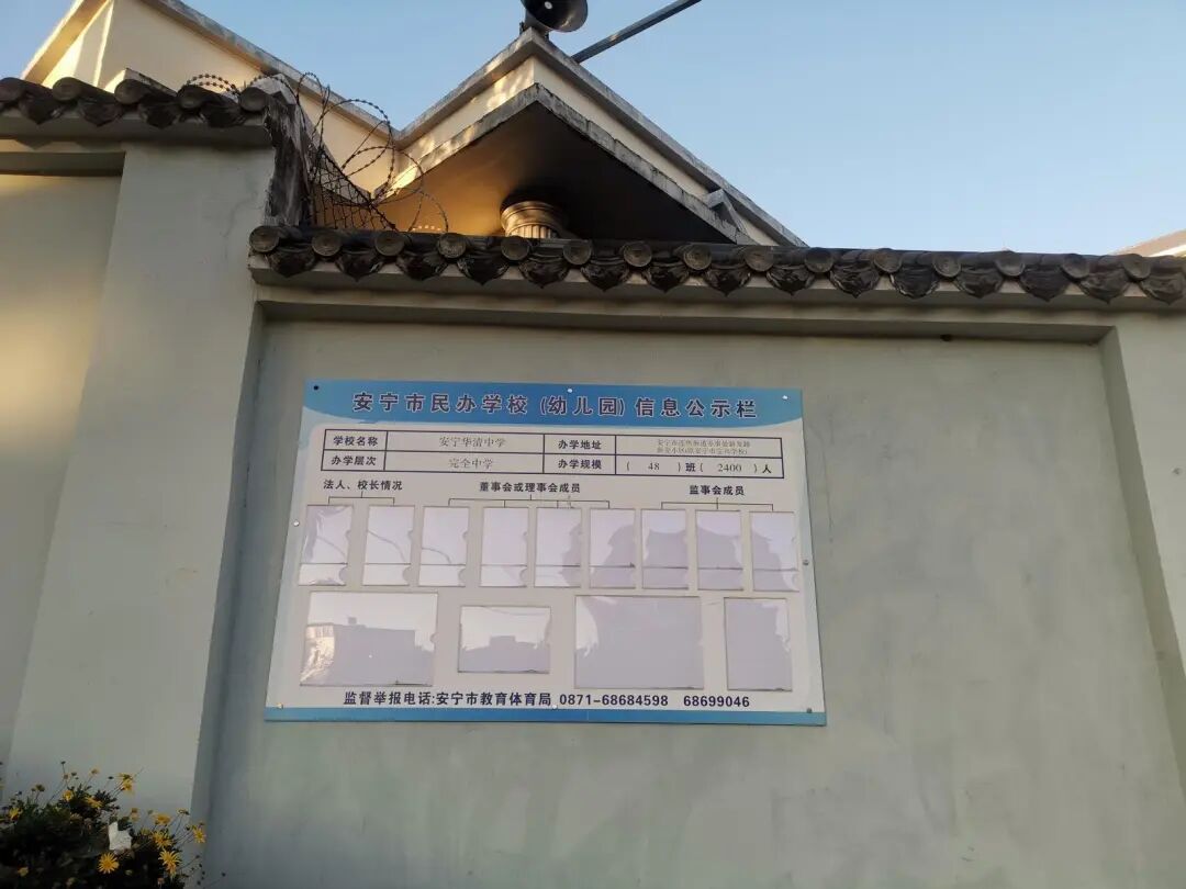 记者在学校门外的《安宁市民办学校(幼儿园)信息公示栏》上看到,该校办学规模为48班、2400人。但公示栏上的法人、校长情况、董事会或理事会成员、监事会成员等信息全部空白。