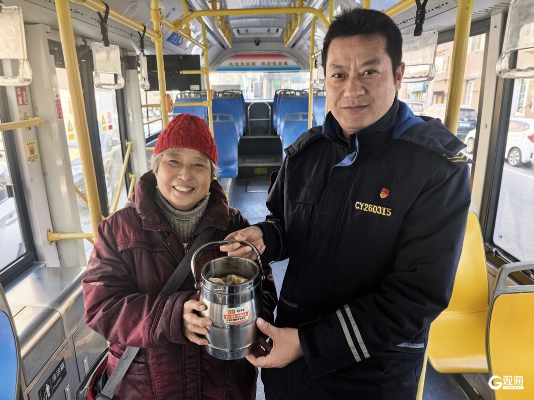 青岛日报社/观海新闻12月22日讯 2025年冬至,在位于市南区的215路团岛贵州路公交站,寒风中的徐女士手捧保温桶,目光专注。当那辆熟悉的公交车平稳进站,她快步上前,将桶递给驾驶员吴相月:“相月,冬至了,我又来给你送饺子了。”